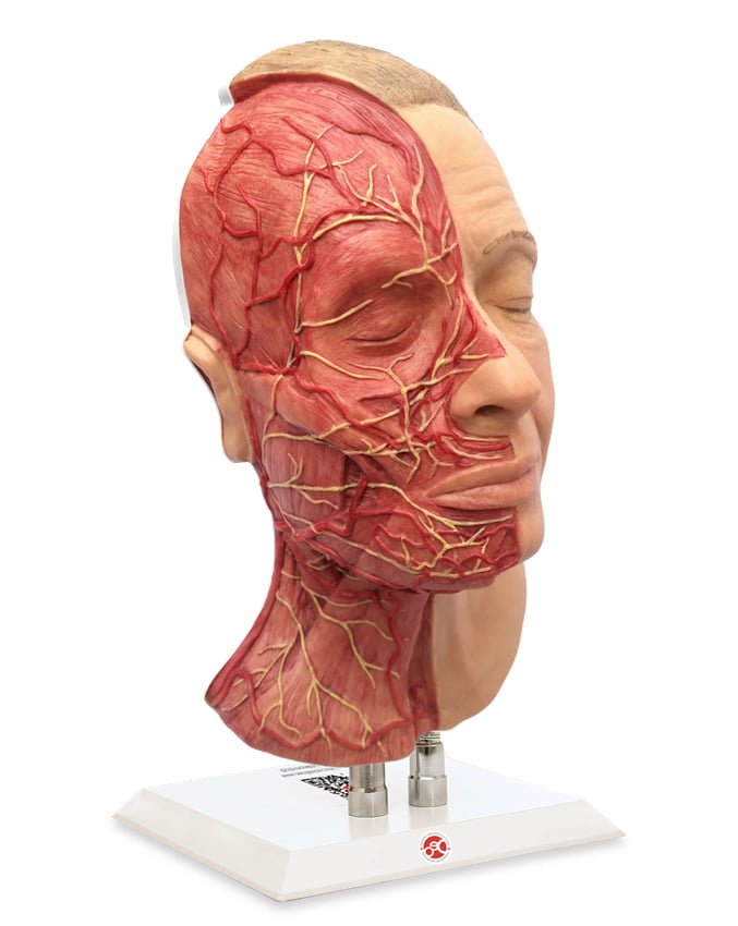 HYPER-REALISTIC HEAD MODEL FOR INJECTION PRACTICE IN AESTHETIC MEDICINE WITH MUSCLE, ARTERIES AND NERVE.